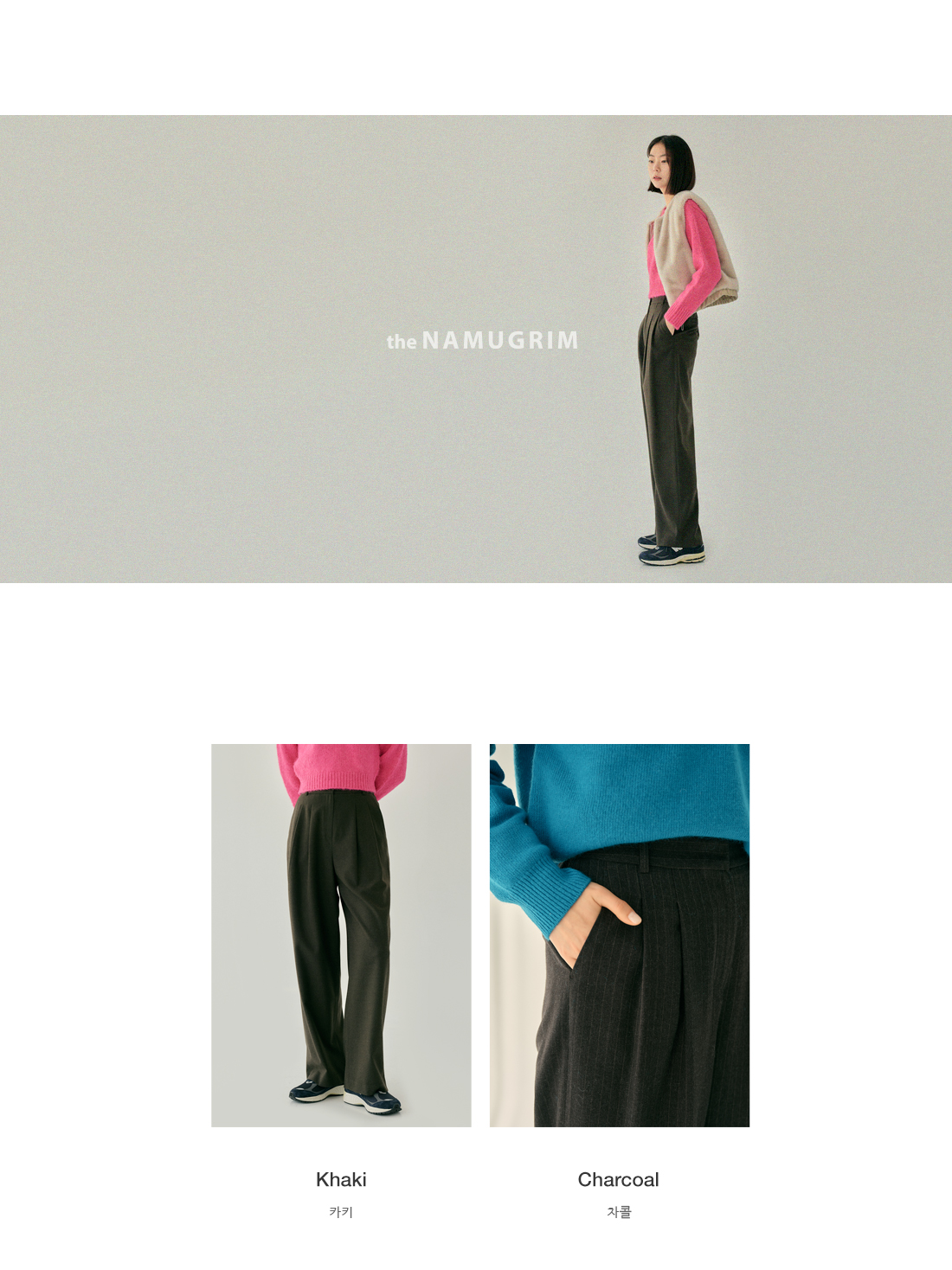 투턱 핀턱으로 여유로운 실루엣의 와이드 핏 슬렉스.
